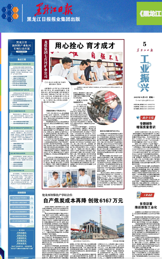 2023年10月9日,《黑龙江日报》第5版刊发《beat365官方网站七台河矿业公司 用心拴心 育才成才》一文,对七台河矿业公司关心关爱入企大学生进行报道。