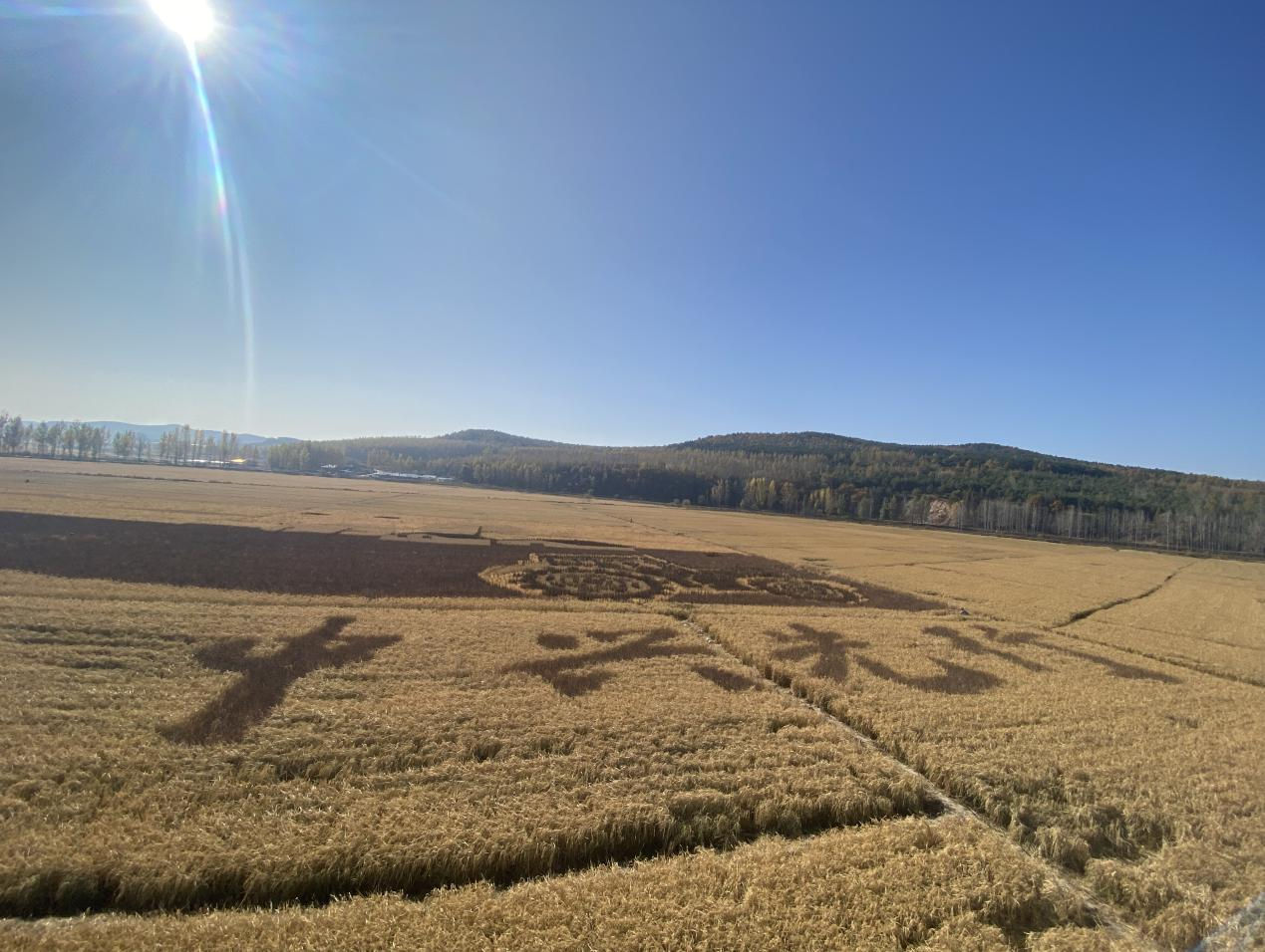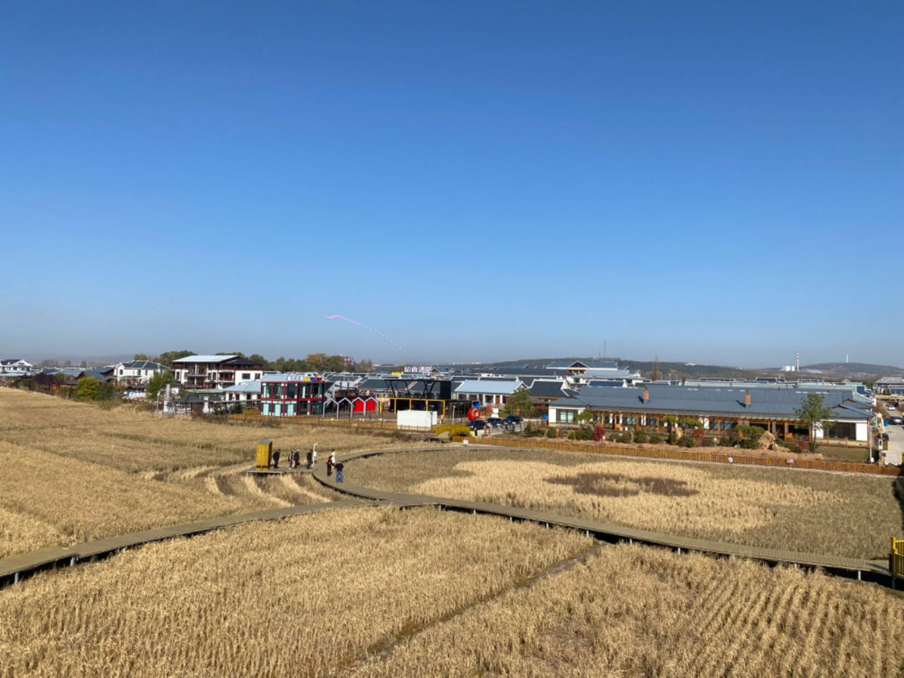 金色的稻浪衬托着白墙黛瓦的朝鲜族特色民居,“乡村振兴 中兴先行”的褐色稻田画成为醉人景观。