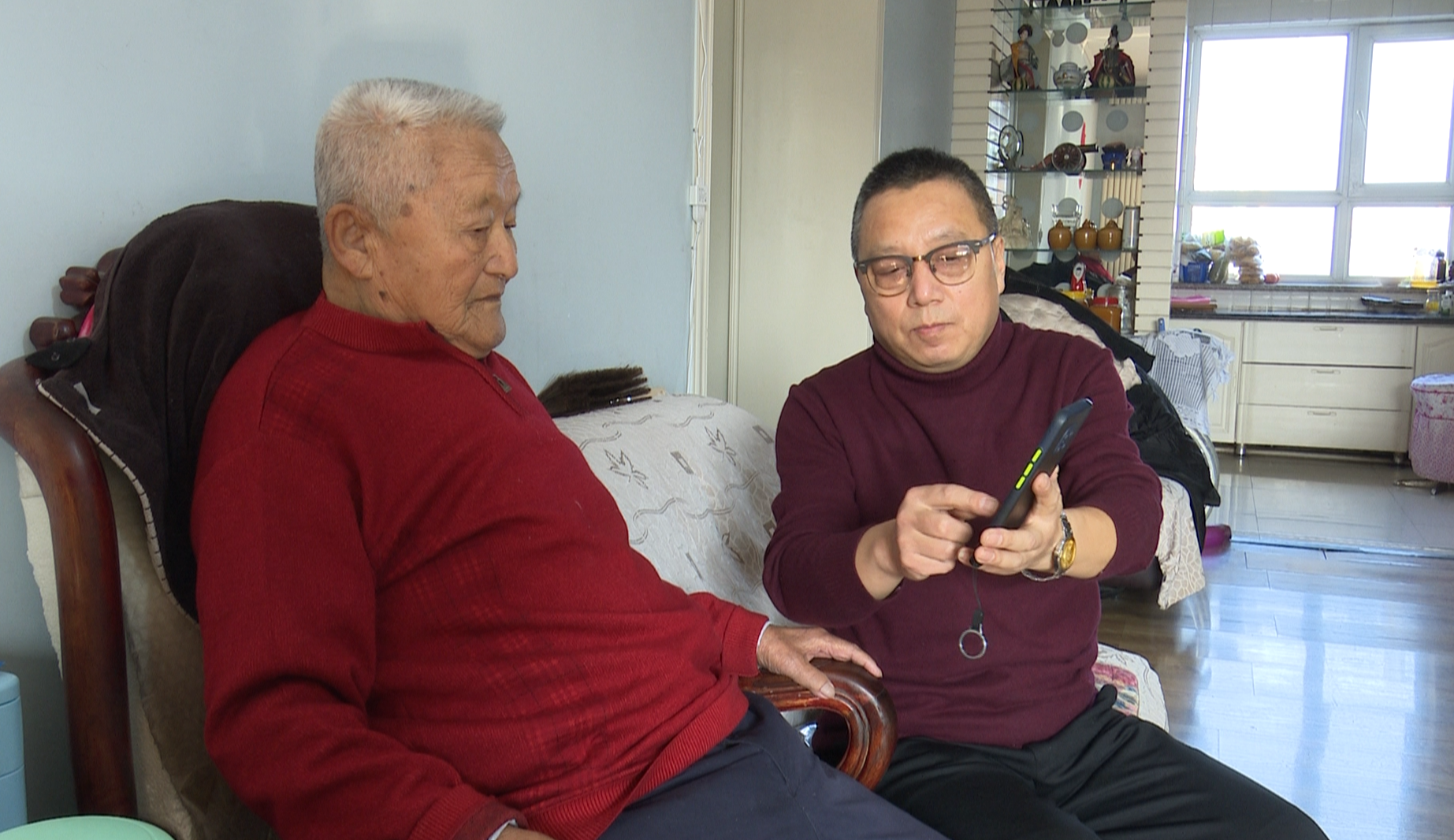 王伟东工作之余,通过网络用手机查看老人在家中情况