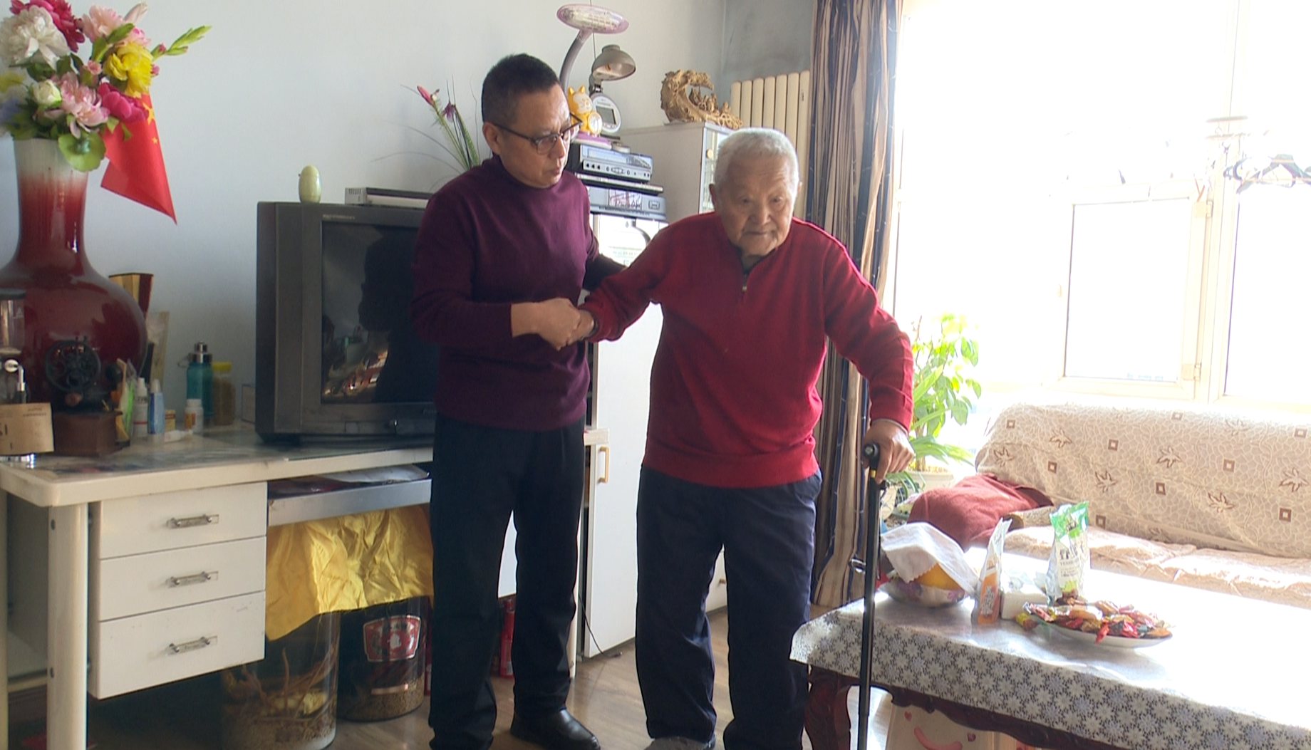 2012年,王世英搬进尖山区豫园社区的一处楼房。由于老人时常咳嗽、走路不方便,2013年老人的老伴儿去世,王伟东与妻子商量后,就与老人住到了一起,照顾老人的衣食住行。
