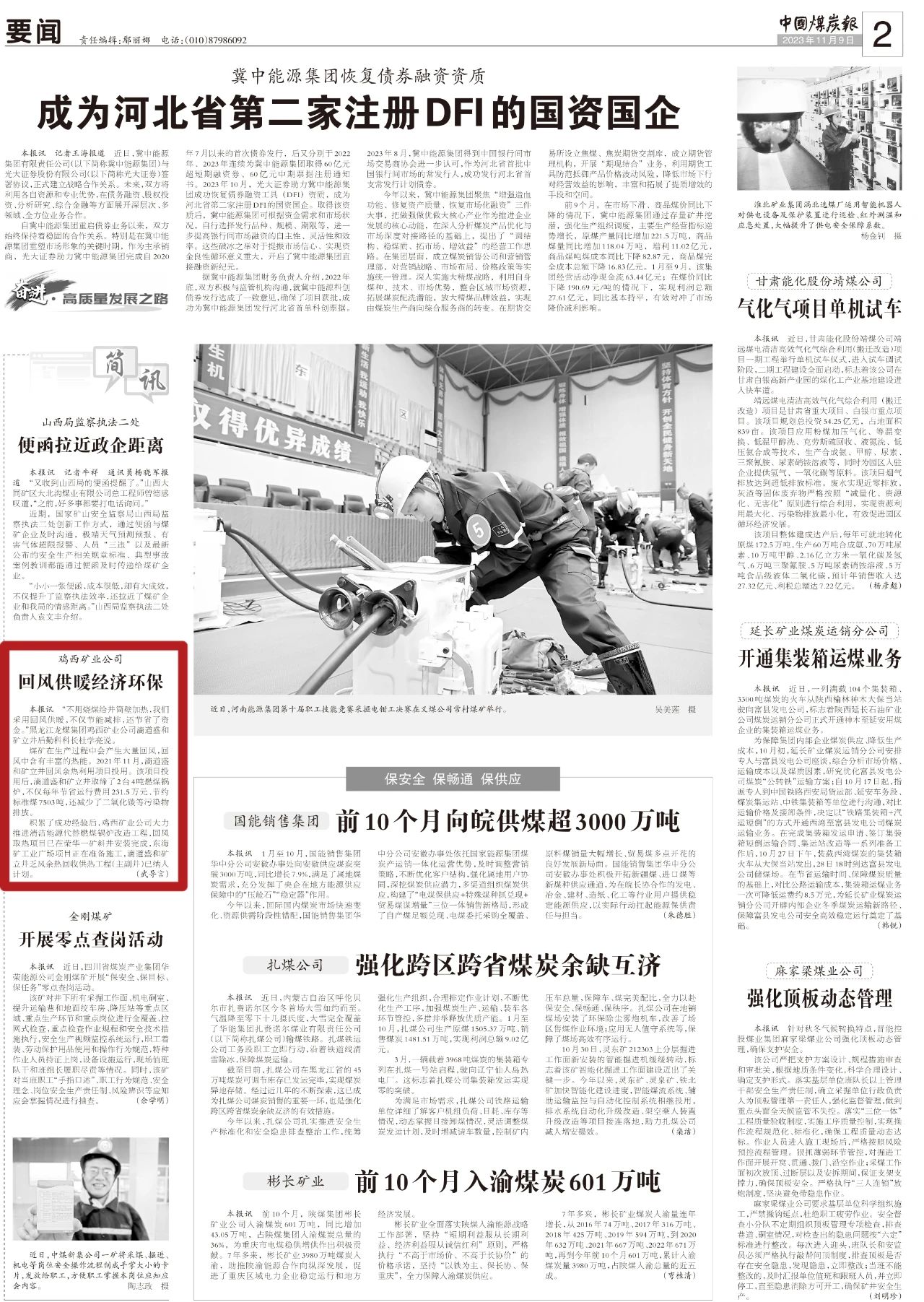 11月9日,《中国煤炭报》对鸡矿公司回风余热利用项目进行报道。