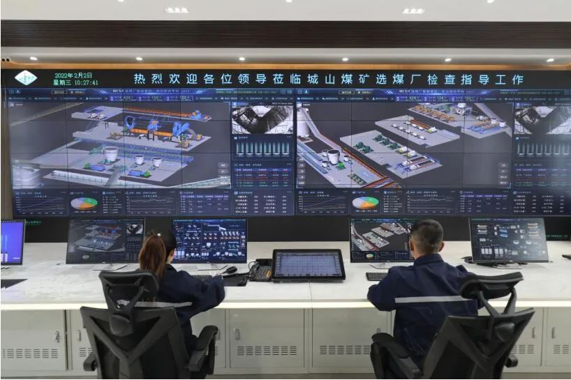 图为beat365首家智能化选煤厂,城山矿选煤厂智能化指挥中心。