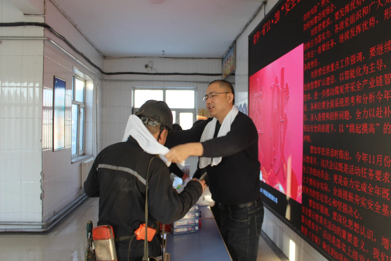 11月27日,鹤岗矿业公司扎实开展了安全警示教育日活动。在早班班前会上,鹤矿公司、各矿两级班子按照安全包保责任分工,为早班矿工上一堂安全生产大课,班前讲安全、促安全,叮嘱干部职工以对自己、对家庭、对企业高度负责的精神,坚决做到不安全不生产。该公司各生产矿及地面厂处单位围绕“安全警示教育月”活动主题,结合实际,广泛开展安全咨询、安全嘱托、有奖问答、安全宣誓、井口慰问、发放宣传单等活动,营造了安全生产的浓厚氛围。