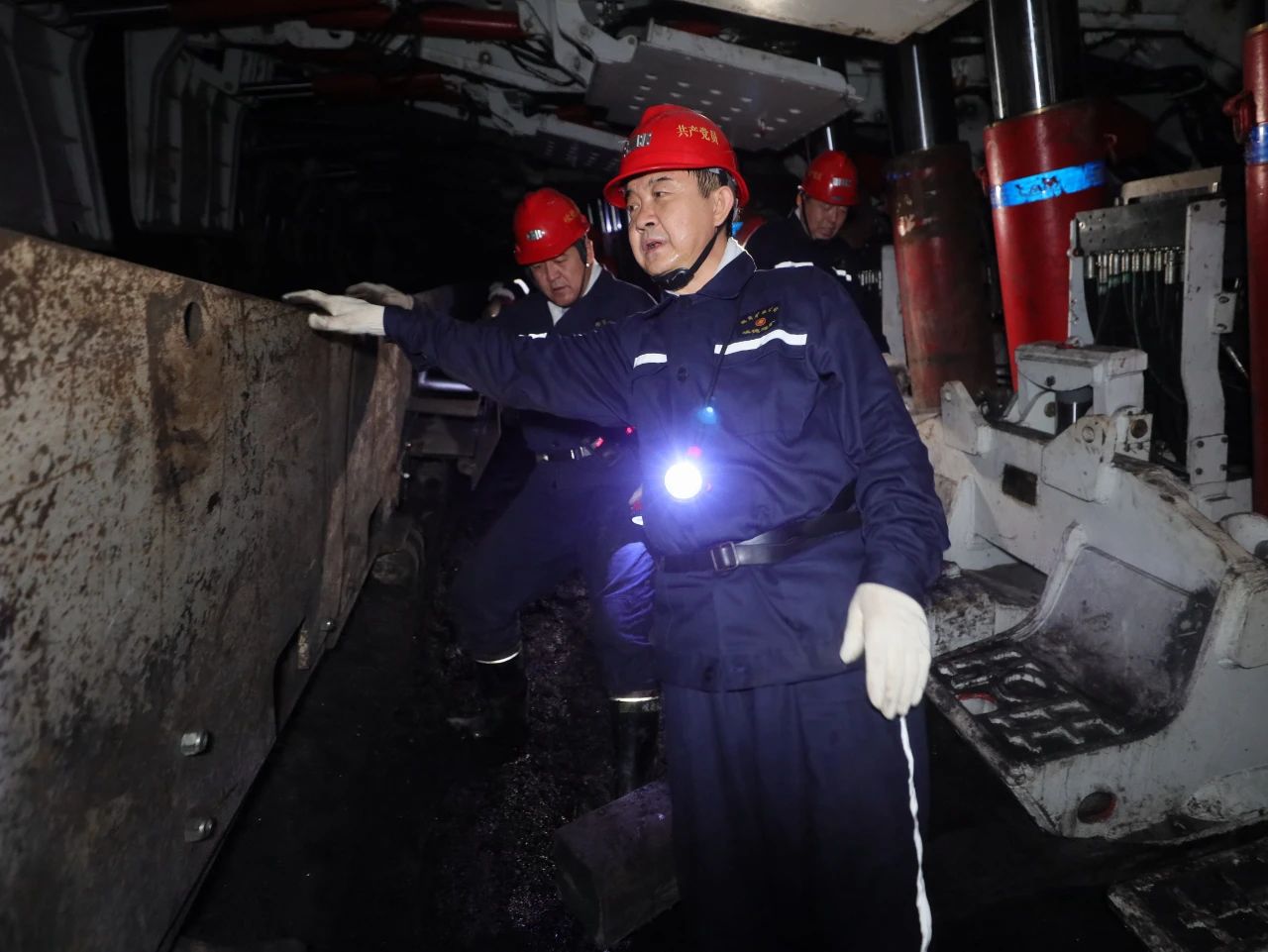 在峻德矿综采接续工作面,刘鹏飞听取了安瓦员的岗位汇报,询问了日常工作期间,瓦斯、一氧化碳等有害气体显现、安全重点监管措施执行等工作情况。刘鹏飞要求,要做好防飞块工作,确保综采支架护帮板、挡煤板正常工作,各连接管路安全可靠,综采设备保持最佳工作状态。要合理组织生产,力争做到搬家倒面不减产,投产即达产,保证正常生产秩序,保持产量规模。要加强现场管理,超前落实灾害防治措施,压紧压实各级责任,确保灾害治理取得实效,为安全高效开采提供坚强保证。