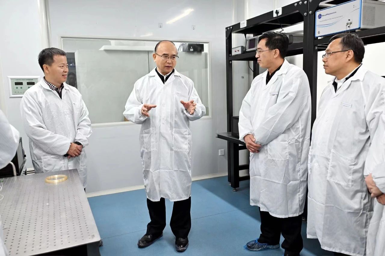 许勤来到哈尔滨工程大学纤维集成光学实验室,详细询问技术原理、应用领域、成果转化等情况
