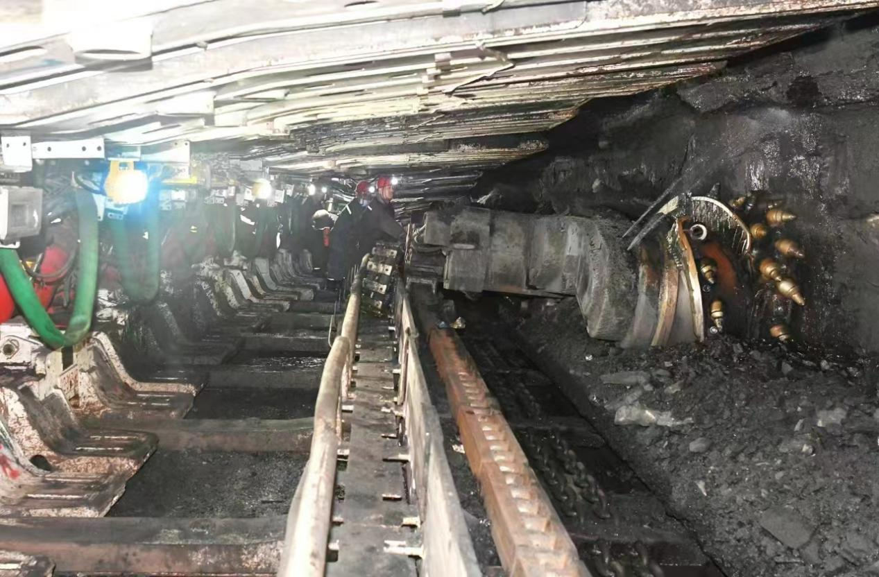 割煤、移溜、出货……一气呵成,一个圆班2刀煤,单产达到5万吨。