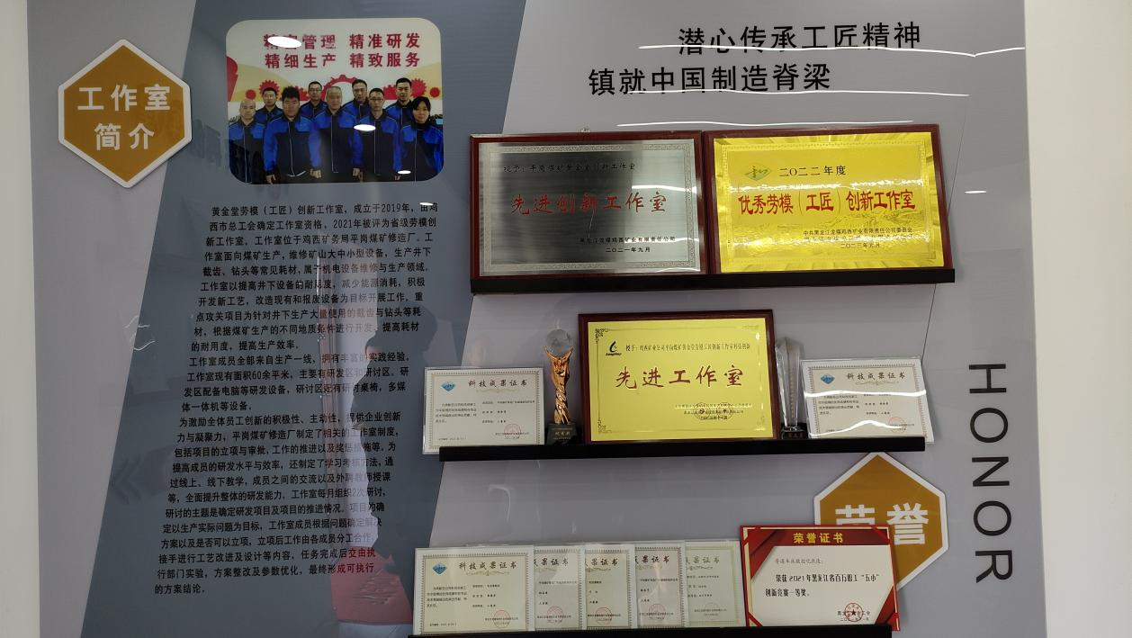 免齿套重型截齿、φ100mm弧形烧结钻头、一体锚杆钎……平岗矿综合修造厂从2018年到2024年获得8项国家专利。此外,他们还获得了省级奖项3个,beat365官方网站奖项11个,公司奖项5个,2023年获得beat365官方网站科技创新先进工作室,鸡矿公司先进劳模工匠创新工作室荣誉称号。这些荣誉和成绩展现了平岗矿综合修造厂卓越的创新能力。