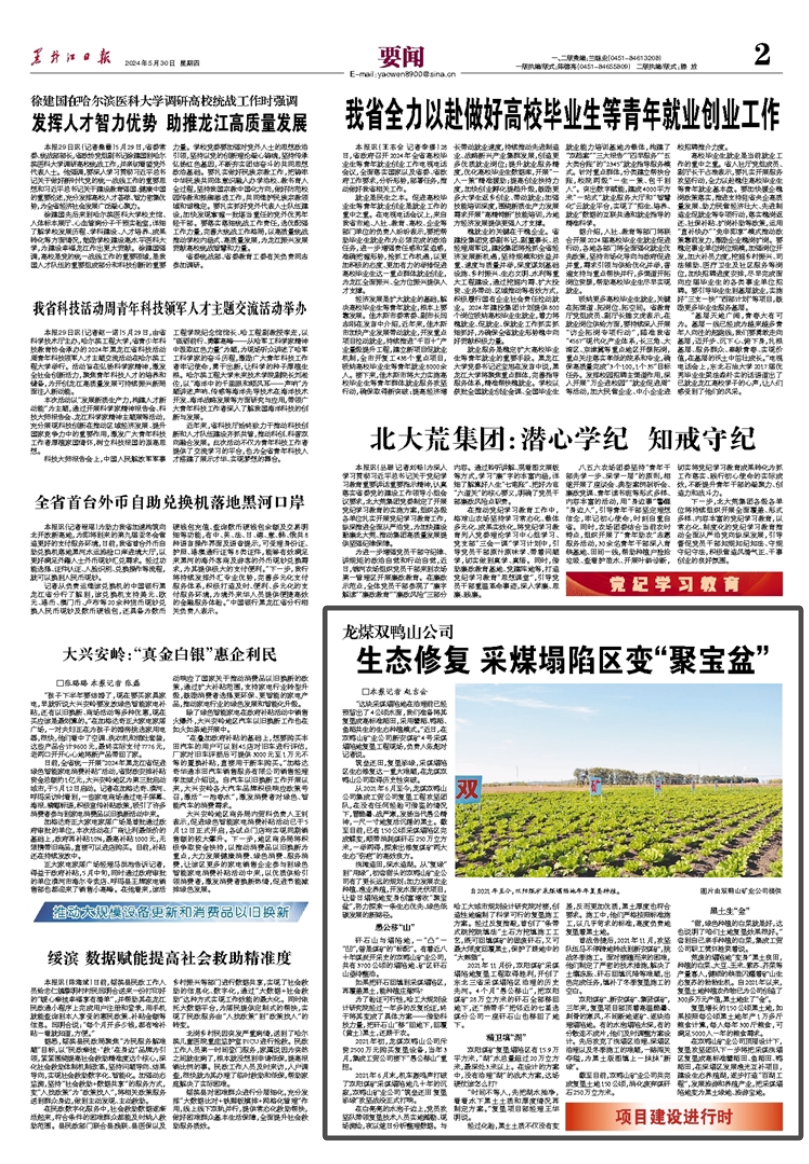 筑垒还田,复垦添绿,采煤塌陷区生态修复这一重大难题,在beat365双鸭山公司取得历史性突破。