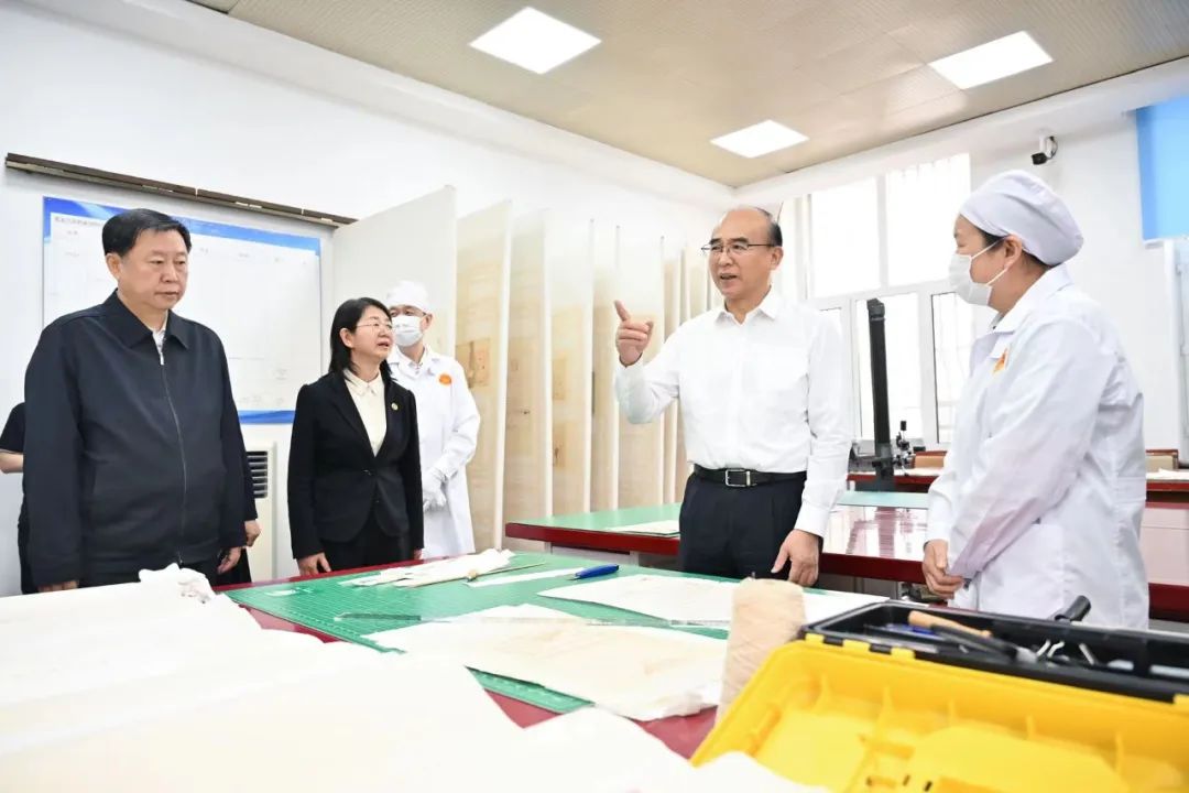 在省档案馆裱糊室,许勤了解档案收集整理、保管保护工作