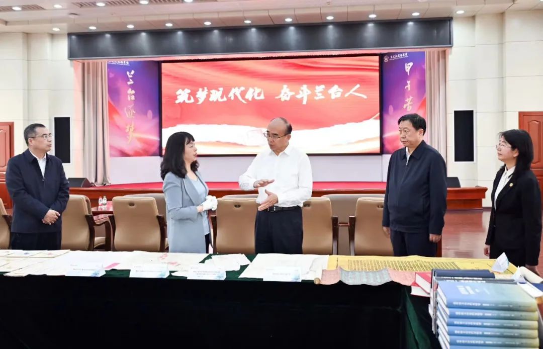 许勤在省档案馆报告厅,察看特藏档案