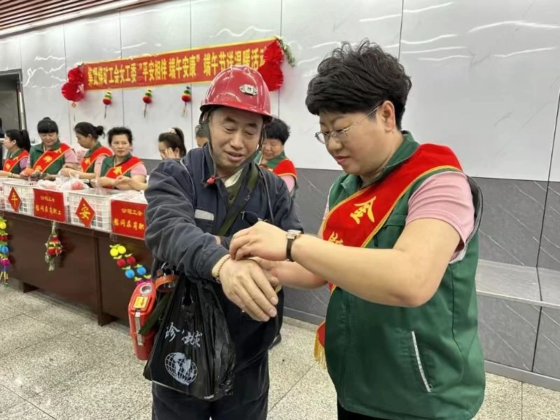 金牌家属们身披绶带,热情地将精心准备的粽子、鸡蛋、苹果等慰问品发放到职工手中,并为他们系上象征平安吉祥的五彩绳。“矿工兄弟们,你们辛苦了!端午节到了,祝你们端午安康。”“师傅,吃个粽子,工作中一定注意安全……”一声声暖心的话语,一句句安全祝福,让职工倍感温馨,极大地鼓舞了职工工作热情和安全生产积极性。“在这个特殊的日子里,能收到这么多的关心和祝福,我们感到非常温暖。我们一定会更加努力工作,为矿区的发展贡献自己的力量。”职工纷纷表示。端午粽香飘,情暖矿工心。慰问活动犹如一股暖流,流淌在每一位矿工的心中,也为矿区增添了一抹温馨的色彩。