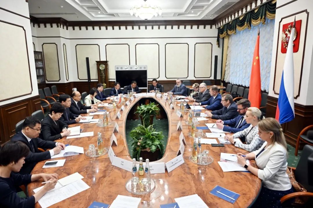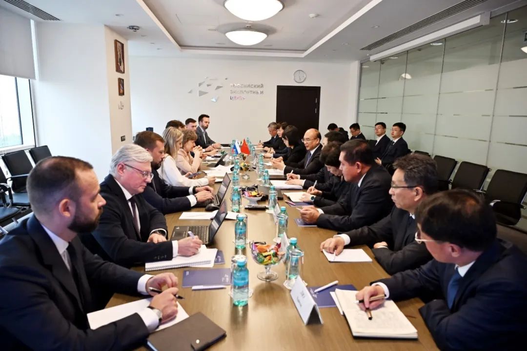 许勤在莫斯科市,与俄罗斯出口中心总经理深入交流。
