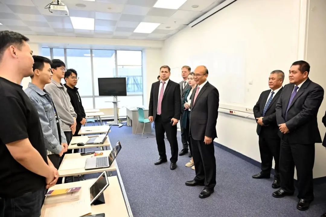 在远东联邦大学,许勤与在该校就读的中国留学生进行交流。