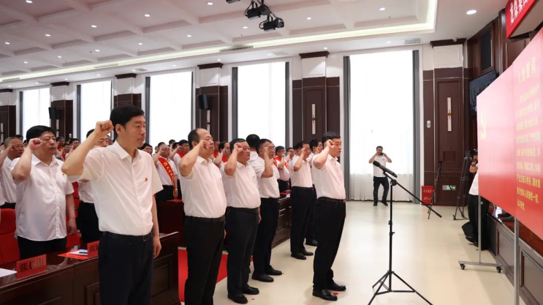 “我志愿加入中国共产党……” 王佳喜带领与会全体共产党员重温入党誓词。