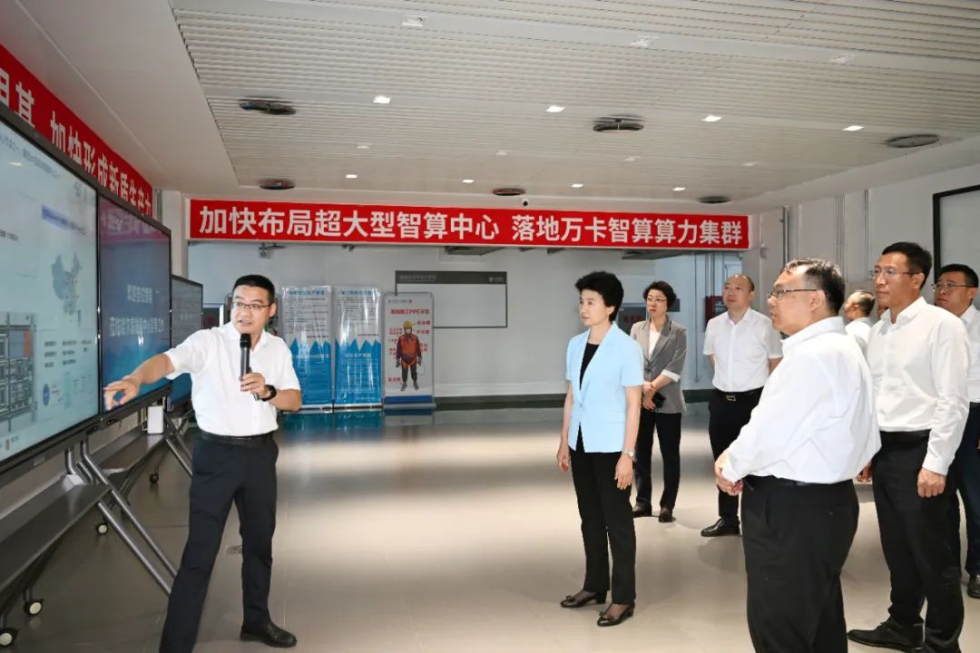 在中国移动(哈尔滨)智算中心,省委副书记、省长梁惠玲听取项目建设情况介绍。