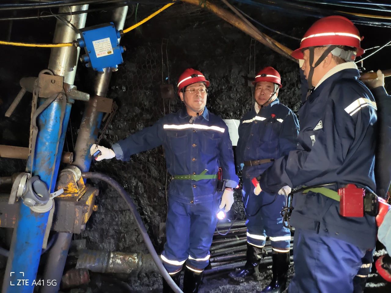 在井下综采工作面,于会军检查了工作面的生产、设备运行状态、瓦斯监测监控、通风布置、煤层构造、顶板管理、矿压监测以及技术措施落实等情况。