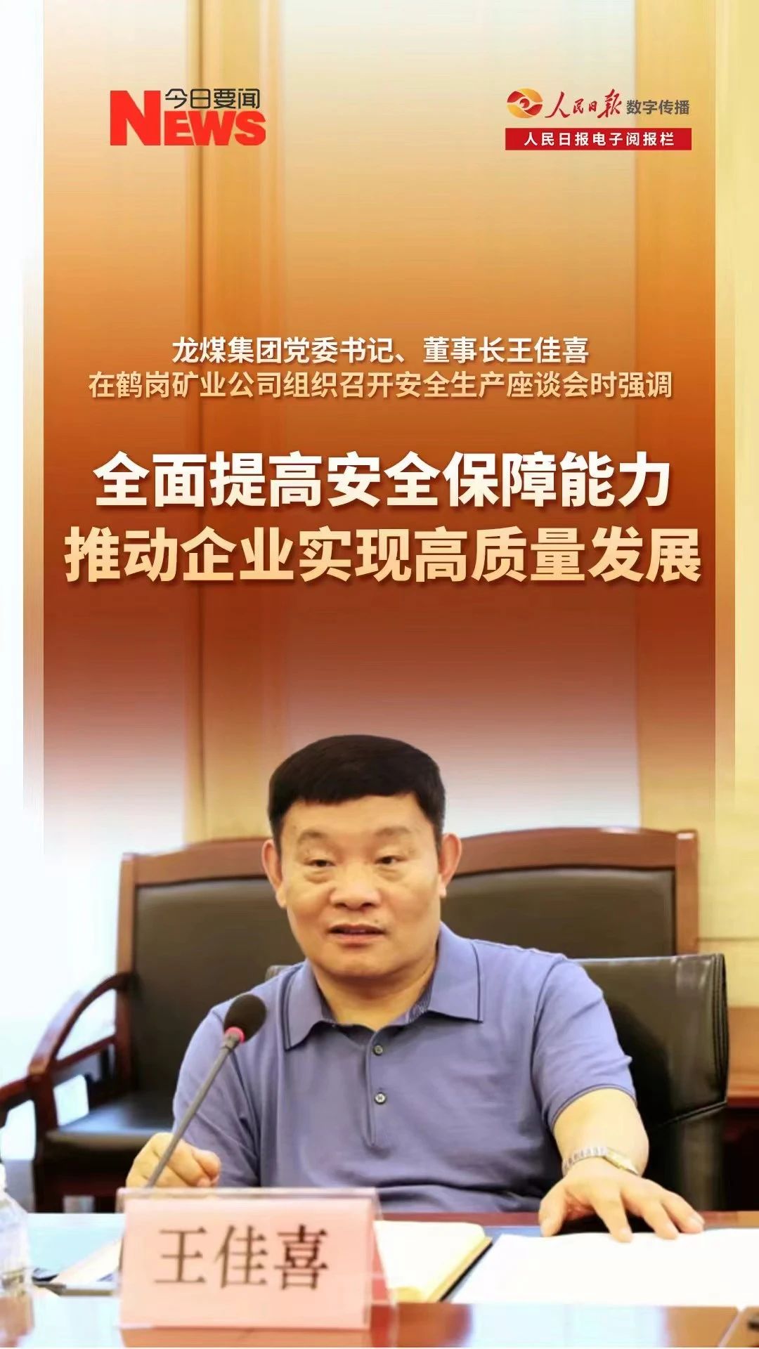 8月17日下午,集团公司党委书记、董事长王佳喜在鹤岗矿业公司组织召开安全生产座谈会。他强调,要坚持深入学习贯彻党的二十届三中全会精神和习近平总书记重要讲话精神,认真落实省委十三届六次全会部署要求,以提高企业经济运行效益为核心,全面加强各项基础工作,为企业实现高质量发展,助推中国式现代化建设作出积极贡献。