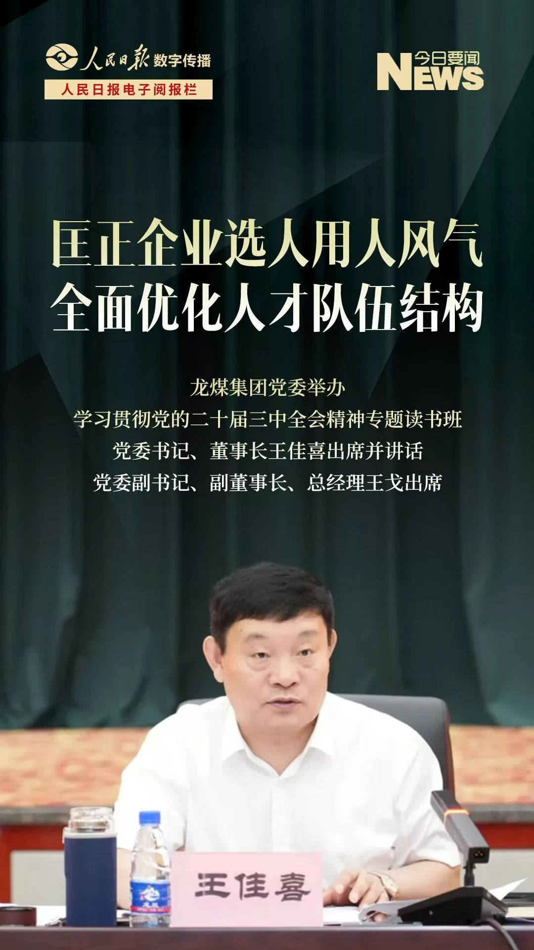 王佳喜强调,要严格按照现代企业制度运行,认真履行制度,做到各负其责、履职尽责。要聚焦主业抓发展、抓接续、抓管理、抓治灾、抓秩序,从企业实际出发,重点解决制约企业安全生产问题。要严格按照《中国共产党纪律处分条例》,匡正企业选人用人风气,全面优化人才队伍结构。要按照上级相关部署要求,坚决抓实“三项制度”改革。要严格招投标管理,切实发挥招标办作用,建立专家库,严格招标考核。要从严资金预算制,强化工资管理,加强亏损企业治理工作,确保企业健康发展。要全面加强合同管理和合规管理,结合企业发展实际,准确把握进一步全面深化改革主题、总目标、重大原则、重大举措、根本保证,切实谋划好“十五五”规划。要抓好安全生产和稳定工作,全方位压实安全生产责任,筑牢安全发展基石。要把学习宣传贯彻党的二十届三中全会精神作为一项重大政治任务,认真学习贯彻习近平总书记重要讲话精神,以读书班学习为契机,深学细悟《中共中央关于进一步全面深化改革、推进中国式现代化的决定》精神,切实把思想和行动统一到党中央决策部署上来,充分调动广大干部职工抓改革促发展的积极性和主动性,推动党的二十届三中全会精神在企业落地生根、取得实效。