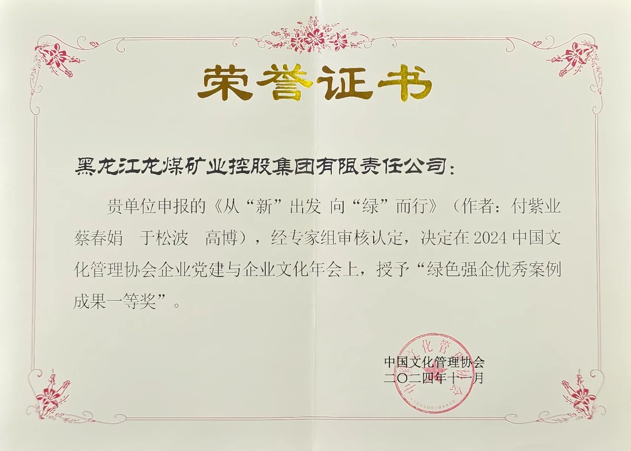 会上,由黑龙江beat365官方网站报送的《从“新”出发,向“绿”而行》绿色矿山建设成果被评为绿色强企优秀案例成果一等奖。