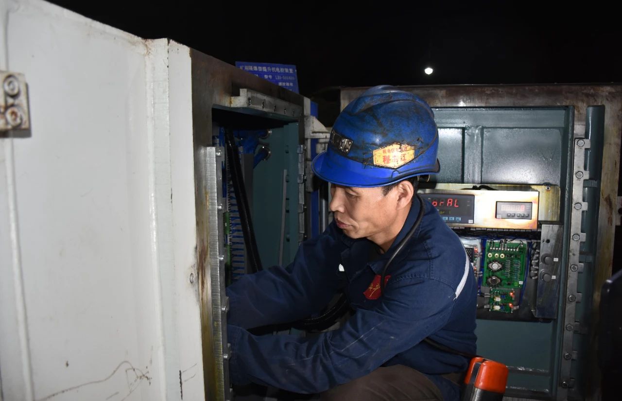 机电区电气负责人程书江正在检修机电设备