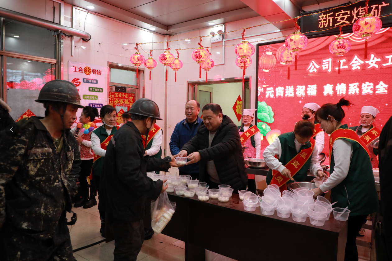 “师傅们,元宵节快乐!吃碗汤圆,暖暖身子!”在新安矿入井口,女工家属们将一碗碗寓意团圆美满、热气腾腾的汤圆送到了一线职工手中。职工们接过汤圆,脸上洋溢着笑容,现场充满了温馨的节日气氛。
