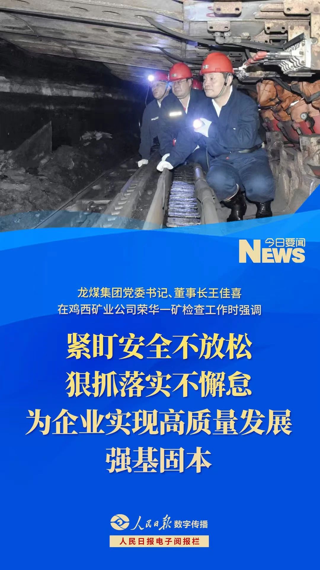 3月11日,集团公司党委书记、董事长王佳喜在鸡西矿业公司荣华一矿检查安全生产工作时强调,要始终坚持永不懈怠的精神状态和一往无前的奋斗姿态,紧盯安全不放松,狠抓落实不懈怠,以“守一方平安,促一方发展”的工作实效,筑牢企业发展基石。