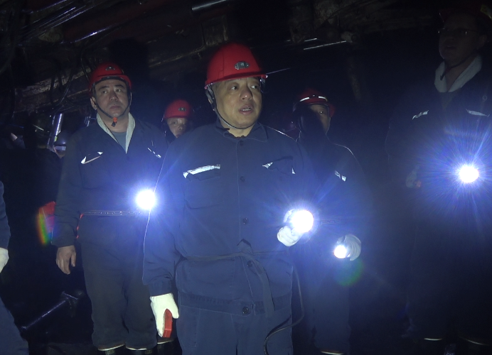 5月17日,主持公司全面工作的党委副书记、副董事长、总经理周旭明到东荣三矿调研检查工作。