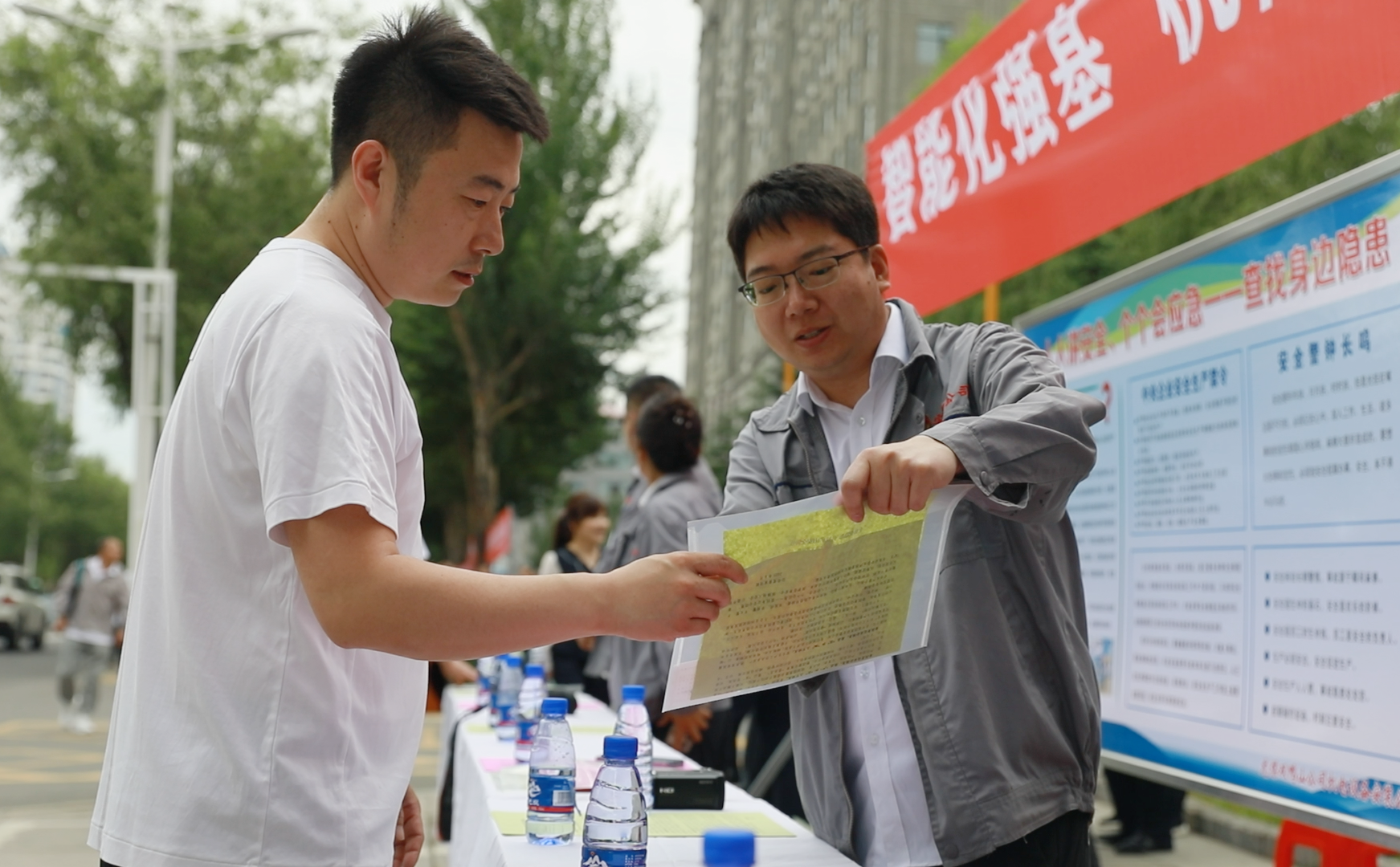 活动现场人头攒动,气氛热烈。公司各单位咨询台整齐排列,摆放着精心制作的宣传展板,内容涵盖安全法规解读、典型事故案例分析、应急救援技巧等,吸引过往人员驻足观看。工作人员细致地向职工发放安全生产宣传资料,包括安全手册、宣传海报、应急指南等,并耐心解答安全生产相关问题。