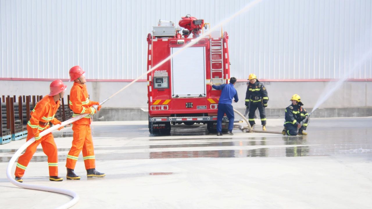 “全体都有,佩戴装备,准备出发!” 随着指挥员一声令下,队员们熟练地扣起新版抢险救援防护服的每一粒卡扣。夏款防护服在晨风中鼓起,黑色作训鞋与地面踏击出整齐的声响,20公斤的呼吸器稳稳固定在队员背部,备用氧气瓶与8公斤重的灭火器在腰间随着步伐轻晃。队伍最前方,党旗与队旗在晨光中舒展,鲜红的色彩为这支钢铁队伍注入了滚烫的信仰力量。