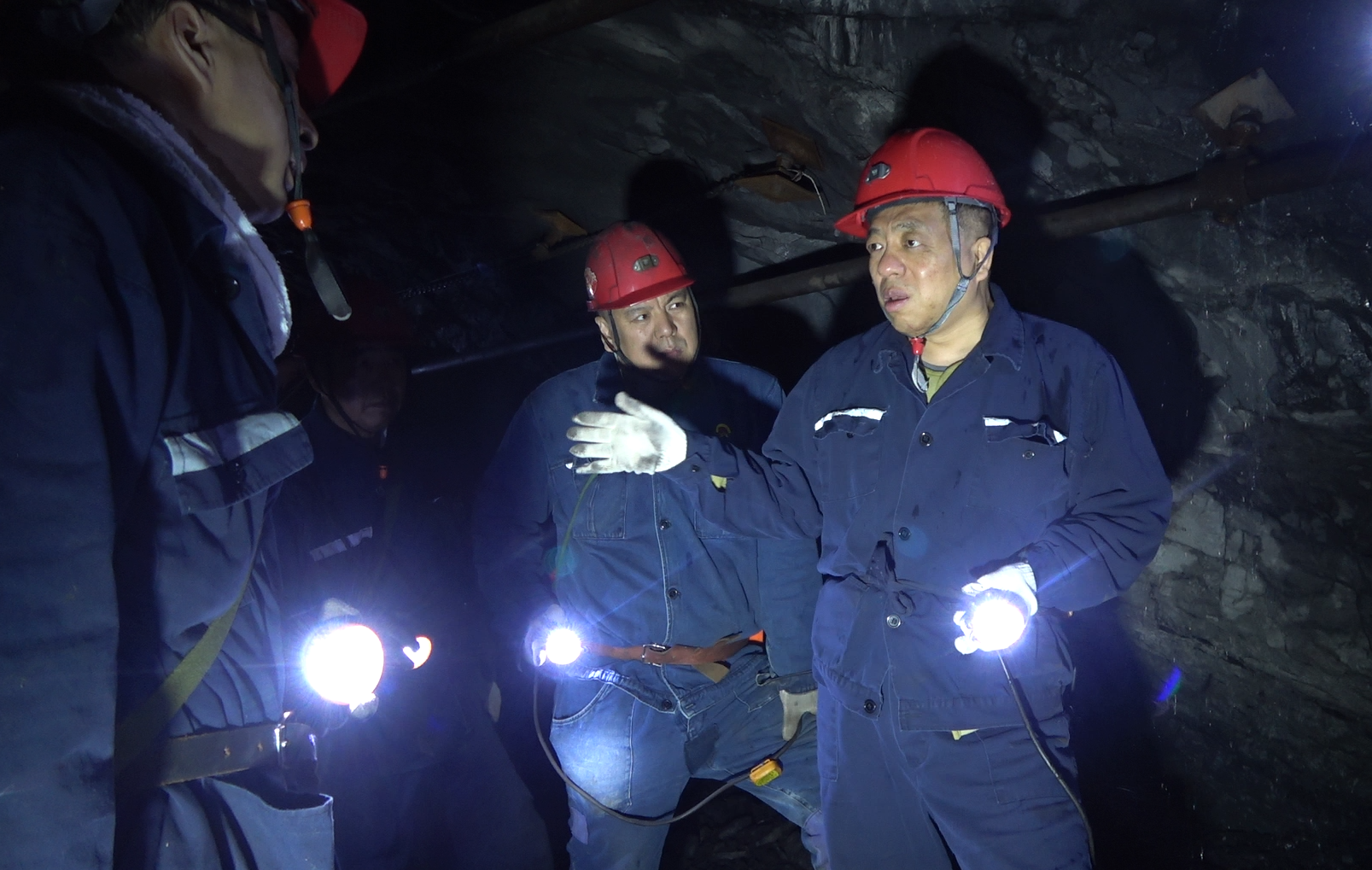 在西三采区306队掘进工作面,周旭明现场查看了巷道施工质量、掘进机械装备使用状态、顶板管理、辅助运输等工作,了解了该区域生产设计、前方地质构造、探放水及水害防治、薄煤层赋存等方面情况。