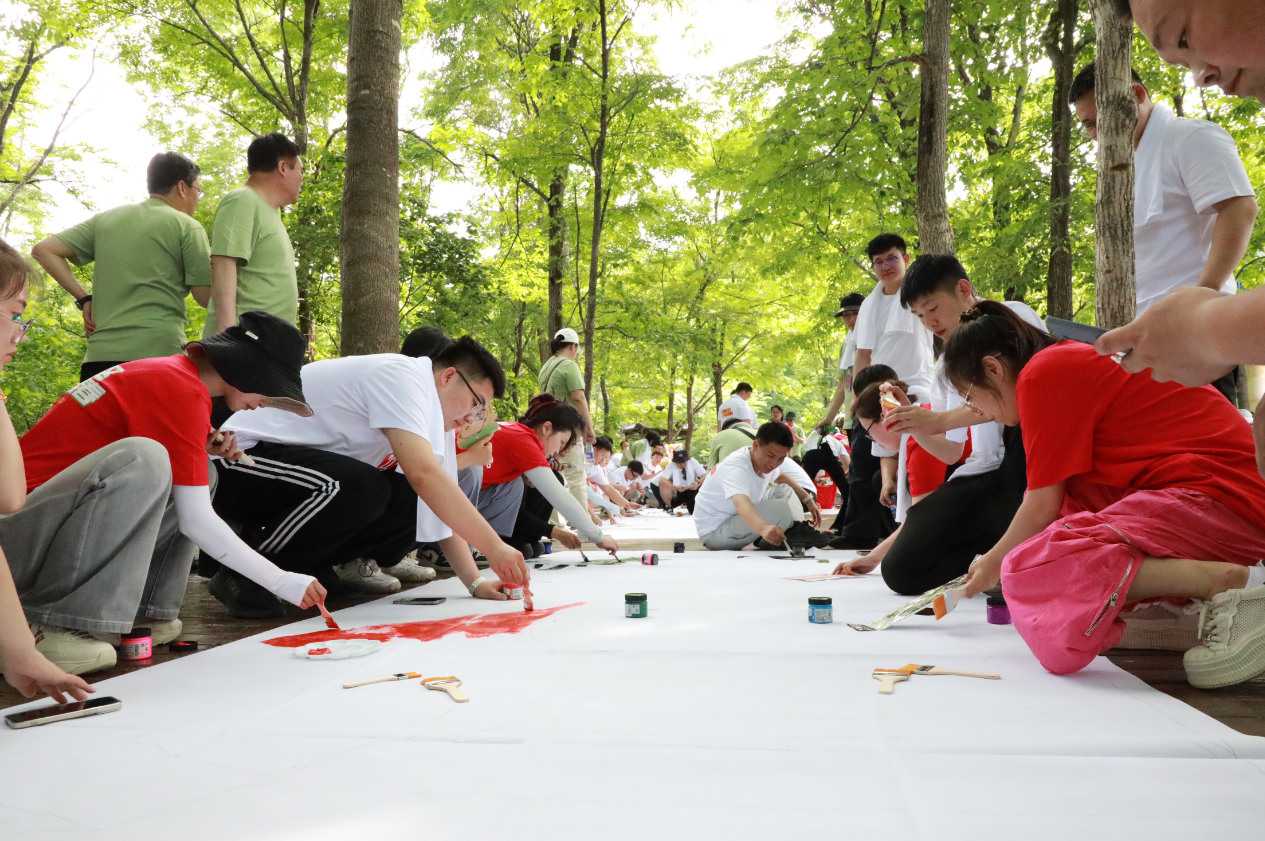 午餐后,团队协作项目“拼画纳斯卡巨画”震撼登场。青年们分组协作,用色彩和创意共同描绘象征美好未来的巨幅画卷,深刻体会到团队的力量与目标的共鸣。