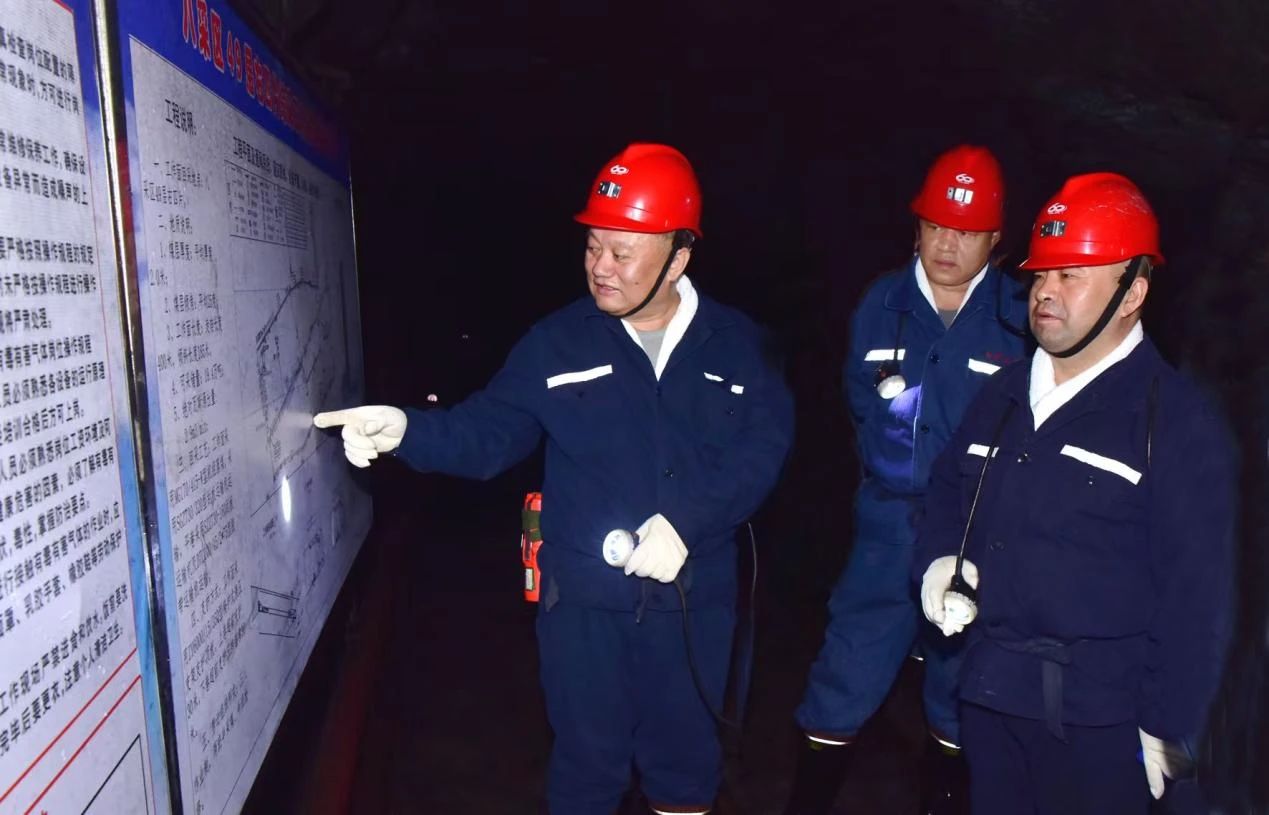 beat365官方网站党委书记、董事长王戈(左一)在beat365七台河矿业公司新兴煤矿调研。