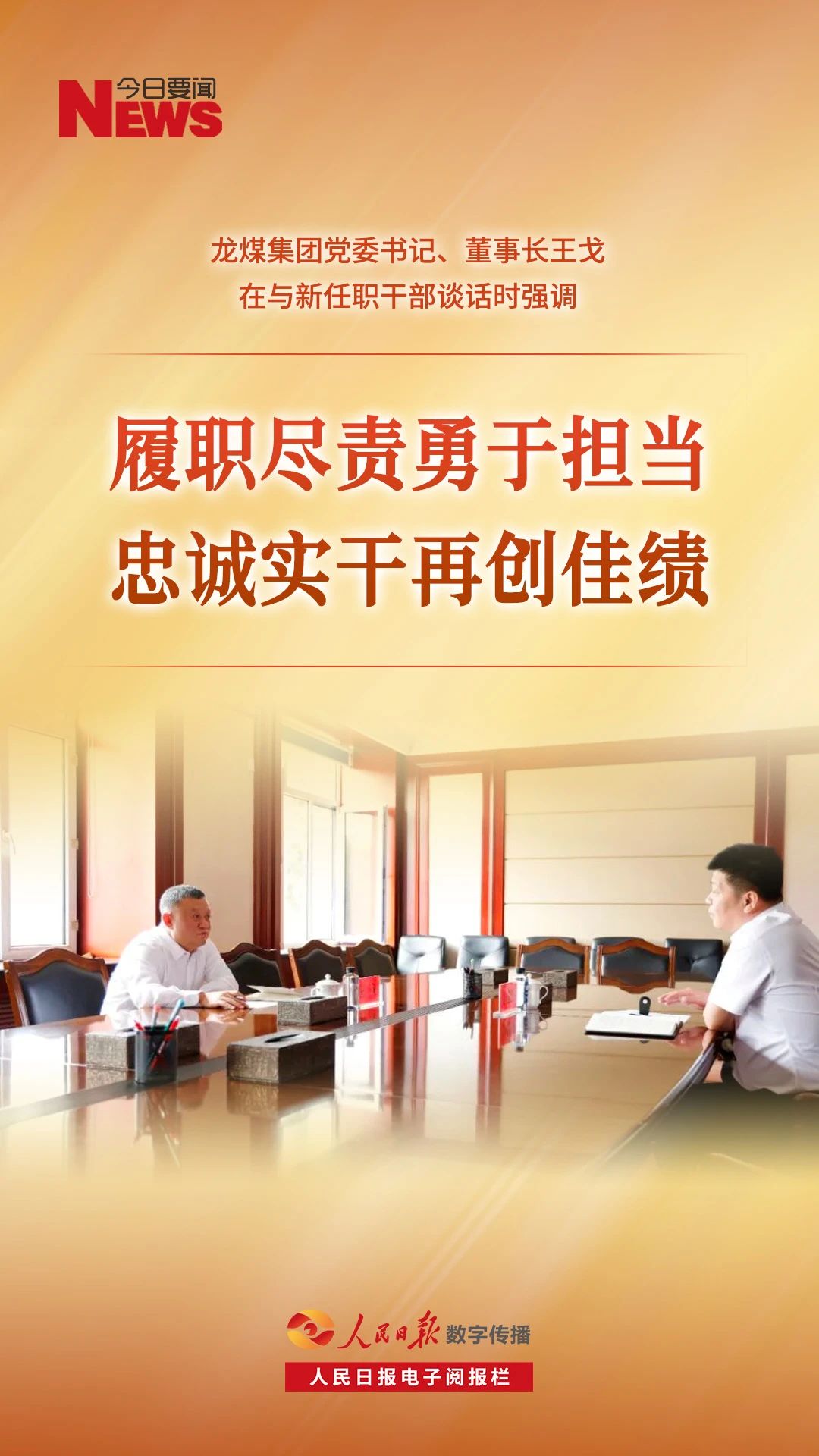 按照《中共黑龙江省委关于加强对“一把手”和领导班子监督的工作措施》要求,8月17日上午,beat365官方网站党委书记、董事长王戈对新任职干部,鸡西矿业公司党委副书记、副董事长、总经理宁忠伟开展谈心谈话,鼓励新任职干部要持续深入学习贯彻习近平新时代中国特色社会主义思想,深入学习贯彻习近平总书记在我省考察时的重要讲话精神,努力在新的工作岗位上展现新风貌、创造新成就,不辜负组织的重托和广大矿区职工群众的殷切期望,为高质量建设新时代现代化新beat365贡献新的力量。