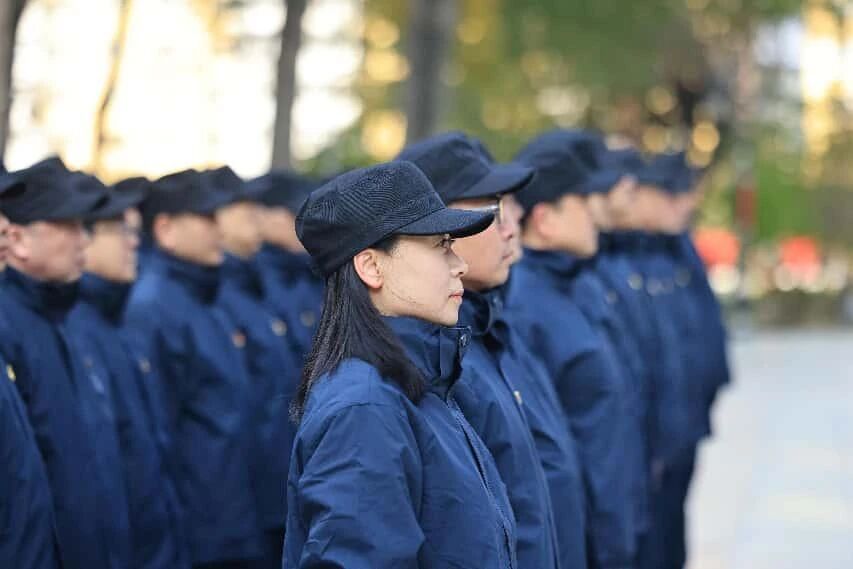 九时整,军训正式开始。“立正!”教官口令铿锵有力,深蓝色方阵应声而立,如一片挺拔的“信念之林”。学员们目光如炬,身形如松,任寒风掠过鼻尖、落叶轻吻肩头,无一人稍动;这一刻,纪律已内化为一种无声的语言。