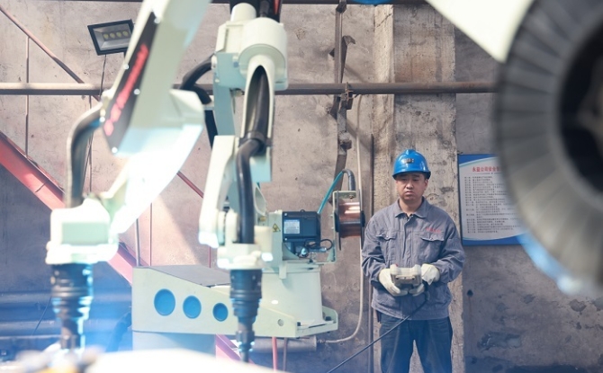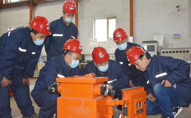 七台河矿业公司新建矿技术工人在钻研设备维修技术。