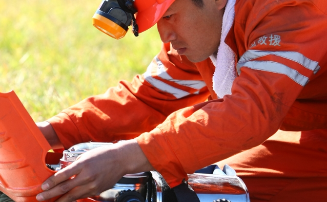 国家矿山应急救援鹤岗队队员正在进行实操比武。1.JPG